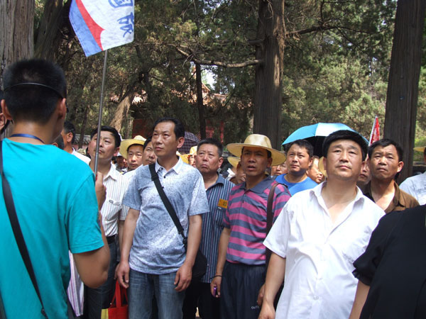 圖為:黨員們在傾聽導(dǎo)游講解孔子的治學(xué)之道