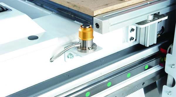 7. 推料裝置:簡(jiǎn)捷高效,推料同時(shí)二次吸塵,確保臺(tái)面無(wú)粉塵;