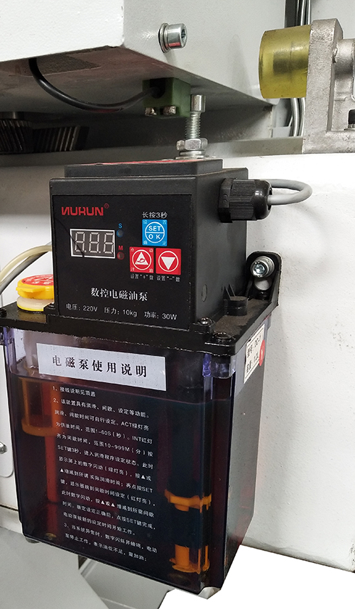 采用微電腦自動(dòng)控制注油系統(tǒng),主動(dòng)控制油量,保證導(dǎo)軌充分潤(rùn)滑,減少浪費(fèi),保證機(jī)床導(dǎo)軌的使用壽命。